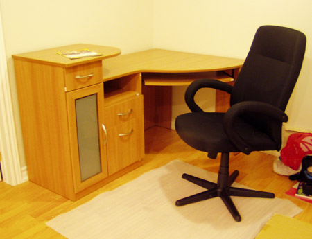 Купив сьогодні стіл робочий і стілець. Збирали з Золтаном з задором. Як конструктор. Сподобалось. Трохи попрацювали. Столик получився те що треба. Стілець получився фіговий. ))) В магазині зібраного не було такого, як я бачив на сайті, дали в коробці. Зібрали і він жорсткий і ніфіга не качається. А поки ми чекали коли нам принесуть наш, перепробували всі. ))) Один особливо сподобався. Напевно завтра його і візьму. Хоч він і дорожчий.