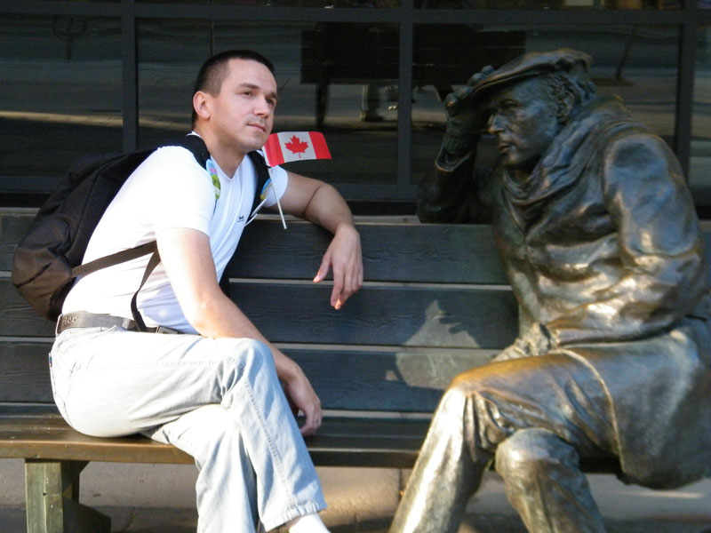 Відсвяткував Canada Day походом у варош. Багато писати не буду. Просто скажу що попав не на всі заходи що хотів, пропустив Salsa Festival, зате побував на Toronto Jazz Festival, що проходив біля City Hall (мерія місцева), послухав групу «Buck 65» (яка до речі грала музику взагалі не схожу на джаз, але все-одно прикольну), з’їв два морожка «на шару» від марки «Худа корова», пообідав фастфудом у Макдональдс, що в Toronto Eaton Center. Прогулявся центром, зфоткався з Glenn Gould, побуав на концерті Sarah Slean що проводився на Harbourfront Centre, подивився кораблики на «Фестивалі парусників». А вже ввечері приєднався до клубу яхтсменів, подивилися феєрверки (слабенько взагалі) що пускали з танкера і пішли на яхту. Познайомився з капітаном Gregory (класний мужик) і після вже поліз додому…