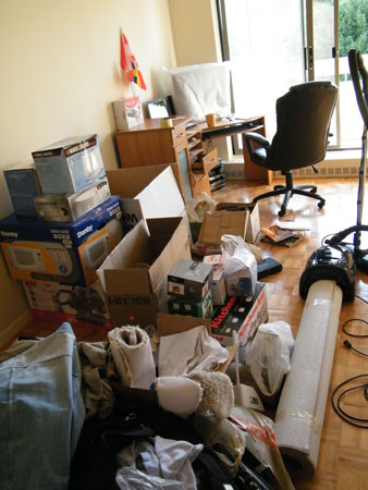 А потім успішно це все розгрузили. Як розклав все по місцям то не так уже і багато всього знову стало. Більше того – в кімнаті в футбола можна грати… Тепер знову купа покупок попереду: штори, килим, столи диван і т.д. Подивився на ціни і подумав, що мені поки і так добре ))).