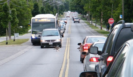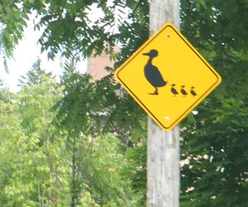 …є гарний маленький парк. Невеличкий ставок-болото, в/на/біля якого купа всякої живності: качки, гуси, черепахи, риба і т.д. Біля ставка є прикольний знак, не усвідомлював я всю глибину його значимості поки сам двічі не зупинився коли ділові гуси переходили дорогу… )))
