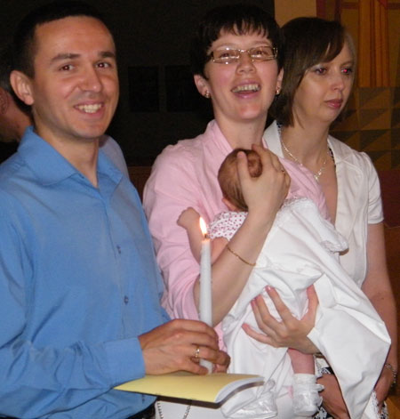 Вчора похрестили Мар’яну Золтанівну :) А я став хрещеним батьком. Дуже гарний і добрий обряд. Піп зайвий раз пояснив про відповідальність хрещених батьків і дав настанову дарувати дорогі подарунки щонайменше на Різдво і День народження… )))