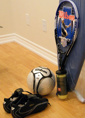 Купив вчора буци, тенісну ракетку і м’ячики.